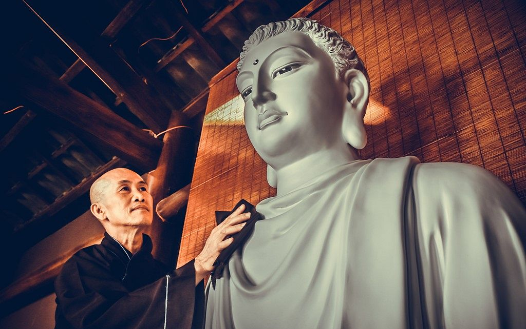 Even the scene at the bottom of the hill is visible in sunny days. In front of the Roadhouse Inn is a white grim statue of Buddha, under which are stone-steps built in semi-circular shape, which looks really unique. The small courtyard of the pagoda is where the monks usually do the morning ceremony. Going further in the pagoda, you will see the gravel garden designed based on the philosophy of static and meditation in Buddhism and the Bodhisattva in the lake.