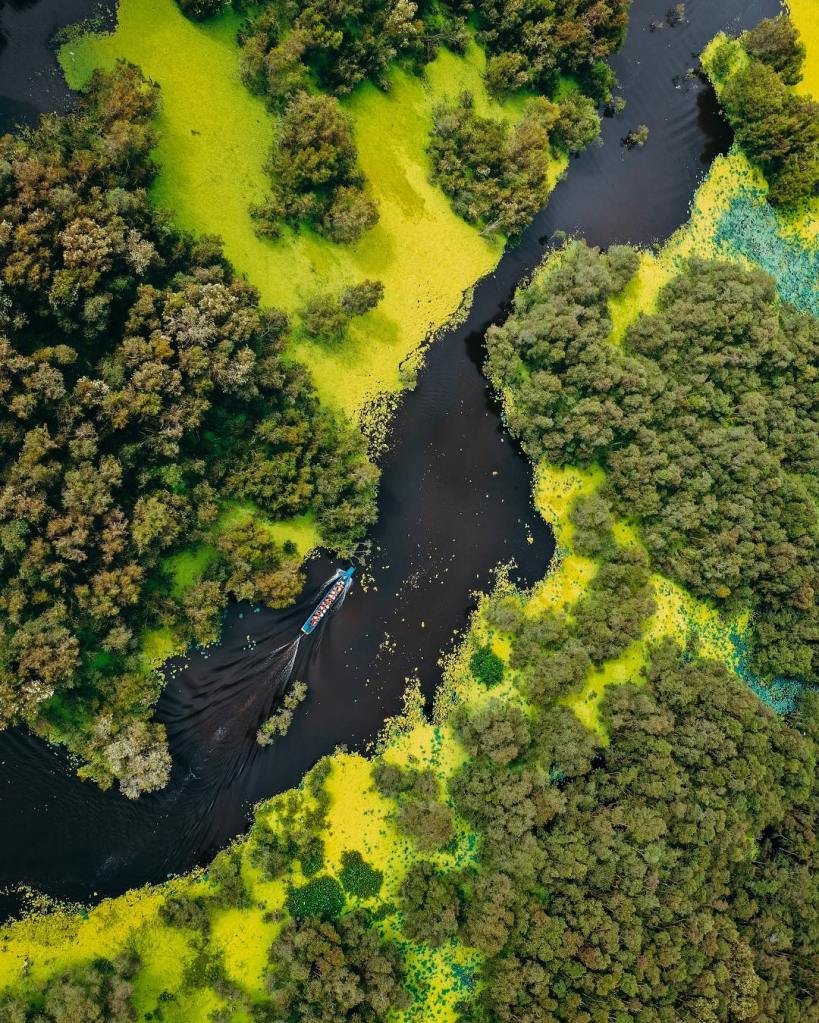 To the core zone, you will switch from your boat to a manually controlled boat to go deep into the nook and cranny of the forest. Without any engine noise or other noisy sounds, you will just gently drift along the water, weaving between small creeks, through the cajuput canopy overhead. Here, you can see a large and thick layer of green duckweed covering the surface of the water. You can touch it and enjoy the beauty of golden flowers and cajuput, creating a wonderful picture of the nature.