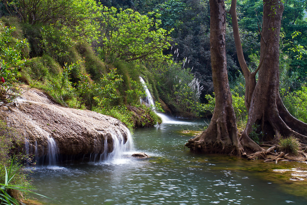This waterfall is located in Muong Sang Ward, Moc Chau District, Son La Province. Dai Yem Waterfall is also called Nang Waterfall or Ban Vat waterfall. Described with the height of 100 meters, Dai Yem waterfall is one of the most famous destinations for tourists who visit Moc Chau. “Dai yem” in Vietnamese means a long piece of cloth.