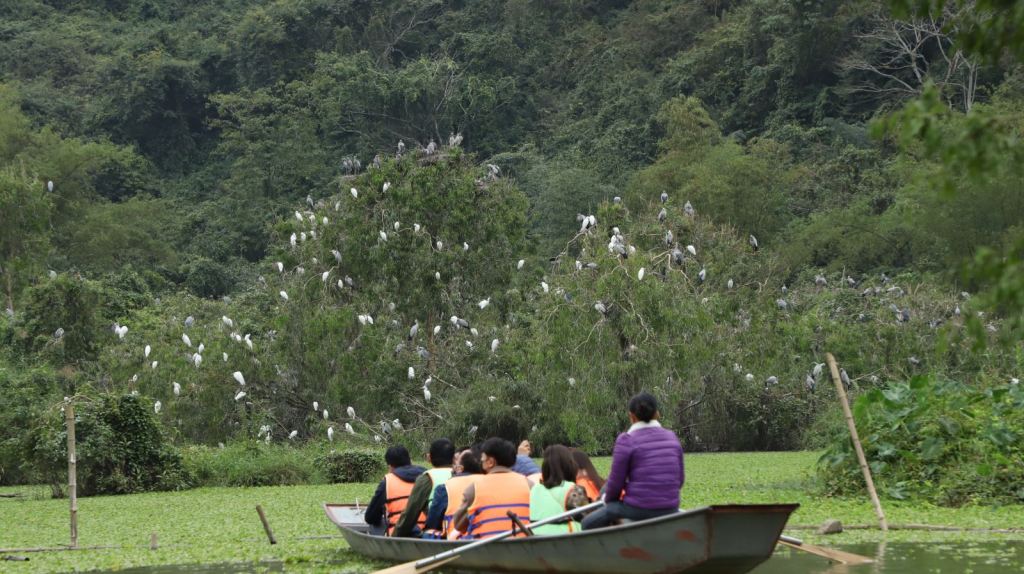 Thung Nham bird sanctuary lies in the core area of Trang An townlet, next to the famous Tam Coc – Bich Dong resort. From the Bich Dong Pagoda, about 4km on road, tourists set foot on Thung Nham – the land of birds.